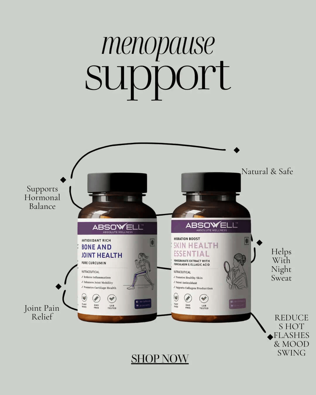 Experience natural relief from menopause symptoms while enhancing bone and joint health with our Curcumin + Pomegranate Fruit Extract supplement. This specially designed formulation targets common menopause concerns such as hot flashes, mood swings, inflammation, joint pain, and night sweats. With its dual-action formula, it provides effective support for women seeking a natural remedy during this transformative phase of life.